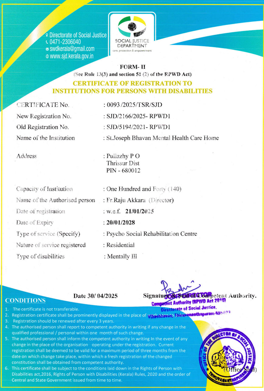 St. Joseph Bhavan Mental Health Care Home with the help of the